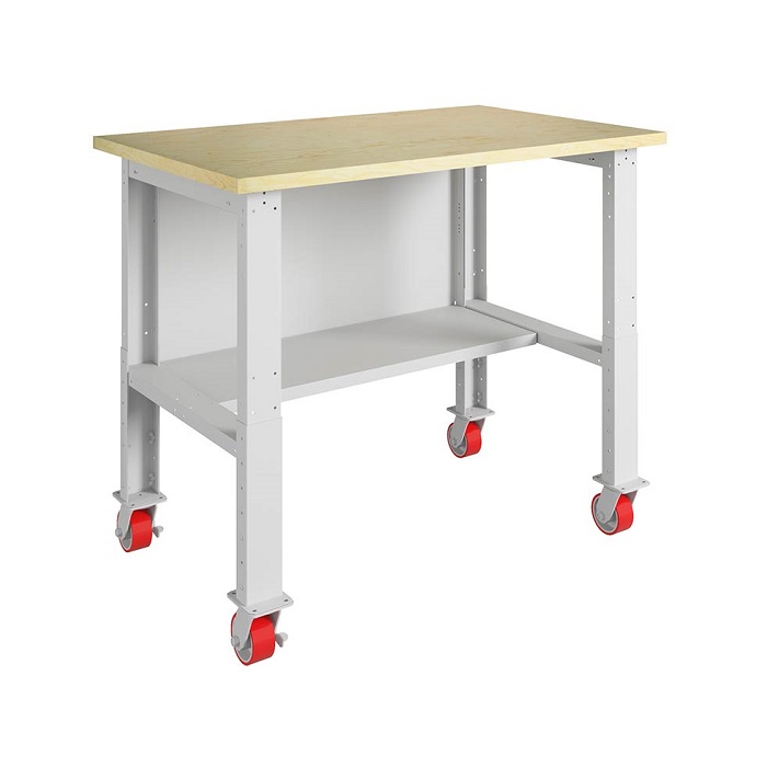 Стол производственный №123 предназначен для организации рабочего места в мастерских, автосервисах, на промышленных предприятиях. Изготовлены из высококачественной стали и отличаются усиленной конструкцией. Стол выдерживает нагрузку 750 кг. В комплект стола входит: Столешница WT-120 мм - 1шт, Опора регулируемая WF-2  2 шт, Полка и стенка Profi WSh-120/0, комплект колес WS (4шт). Столешница выполнена из фанеры толщиной 30 мм. Опоры возможно регулировать по высоте от 870 до 1120 мм с шагом 50 мм. Предусмотрена площадка для монтажа комплекта колес WS к опоре. Дополнительно на стол можно установить: подвесную тумбу WD-0; заменить накладку (оцинкованный металл толщиной 1,5 мм или накладка из окрашенного металла толщиной 3 мм); перфорированный экран; аксессуары для инструментов. Стол производственный поставляется в разобранном виде. Цвет: корпус - серый Ral 7038, столешница не окрашена. Стол производственный поставляется в разобранном виде. Цвет: корпус - серый Ral 7038