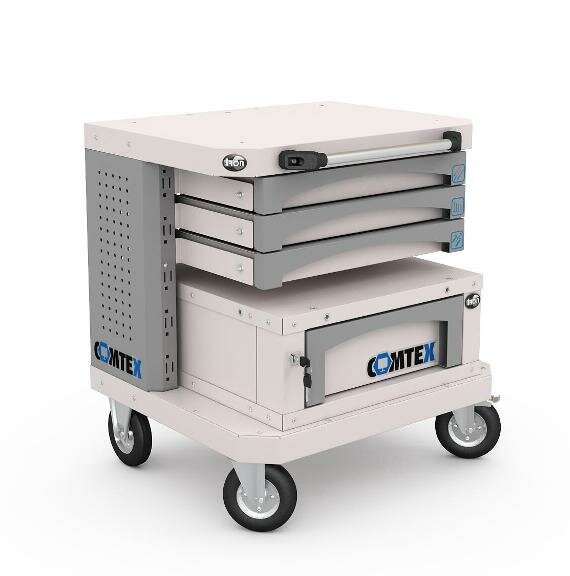 Дополнительно на тележку можно установить: выдвижную полку Comtex, выдвижной ящик Comtex, кронштейн для монитора, кронштейны для RACK модуля, цоколь для тумбы Comtex, лоток для тумбы/тележки Comtex, карман для документов А4 и другие аксессуары.