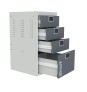 В комплектацию верстака входит: столешница 1280 SMART, тумба SMART 1-1, тумба SMART 4, тумба-пенал SMART, одна перфорированная панель (экран) SMART. Столешница выполнена из фанеры 27 мм со стальной окрашенной накладкой 1,2 мм. Тумба SMART 1-1 комплектуется одной дверью, одним выдвижным ящиком и одной полкой. Возможна смена стороны открывания двери тумбы. Внутренняя стенка двери имеет универсальную перфорацию для размещения навесных элементов. Тумба SMART 4 комплектуется 4 выдвижными ящиками. Выдвижные ящики оборудованы телескопической системой полного выдвижения ящиков с фиксацией в закрытом состоянии (50000 циклов). Тумба-пенал SMART выдвигается на четырех телескопических направляющих и предназначена для хранения крупногабаритных инструментов и аксессуаров. Все тумбы закрываются ключевым цилиндровым замком. Секретность замка 2000 комбинаций (2 ключа в комплекте). Перфорированный экран SMART имеет универсальную перфорацию для размещения различного типа крючков и держателей инструмента. Шаг квадратной перфорации (10 мм) - 38х38 мм, круглой (7 мм) - 25х38 мм. Цвет верстака: корпус тумб - серый Ral 7035, столешница, лицевая панель тумб - графит Ral 7016. Поставляется в разобранном виде.