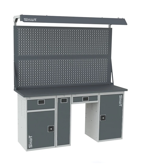 Дополнительно на верстак можно установить: аксессуары на экран SMART, подвесной ящик Smart, поменять вид тумб, а также возможна установка системы мастер ключ