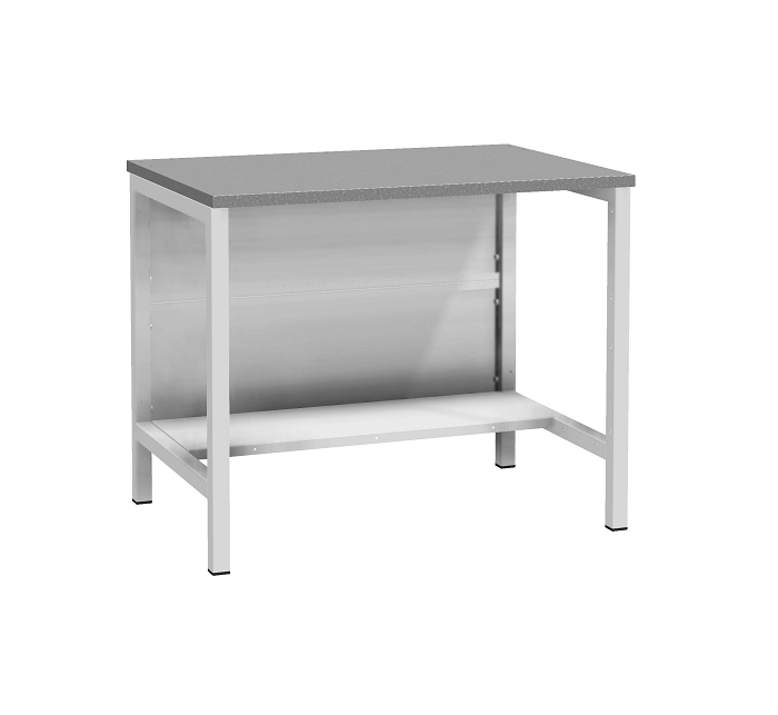 В комплектацию верстака входит: столешница ВЛ-К 100, опора ВЛ-К, промежуточная панель ВЛ-К. Столешница выполнена из фанеры толщиной 25 мм и сверху покрыт оцинкованным листом металла. Опора сварная. Размер опоры (ВхШхГ) - 800х40х660 мм. Промежуточная панель устанавливается между двумя опорами и предназначена для придания жесткости верстаку. Одновременно является задней стенкой или нижней полкой.