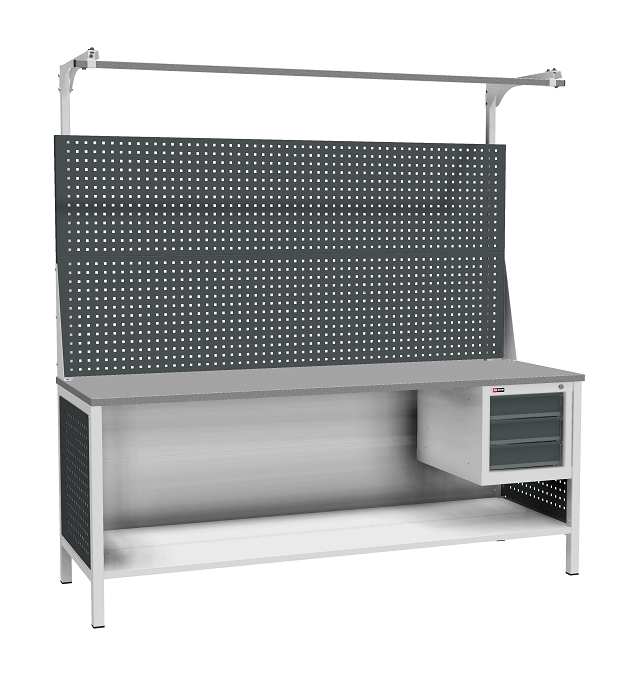 Дополнительно на верстак ВЛ-К можно установить: тумбы ВЛ-К-010, ВЛ-К-015, подвесные тумбы ВЛ-К-009, ВЛ-К-014, перфорированный экран, аксессуары на перфорированный экран, комплект освещения.